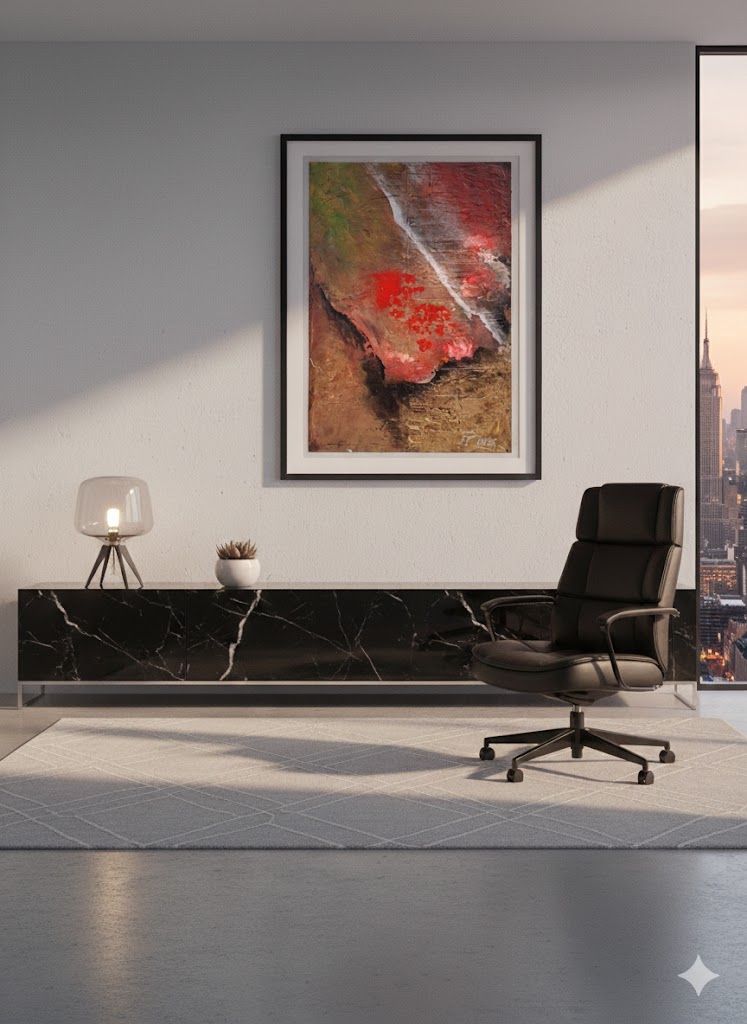 Vielseitige Wirkung: Ob als kraftvoller Akzent im Wohnzimmer oder als inspirierendes Element im Büro – dieses Bild zieht Blicke magisch an.